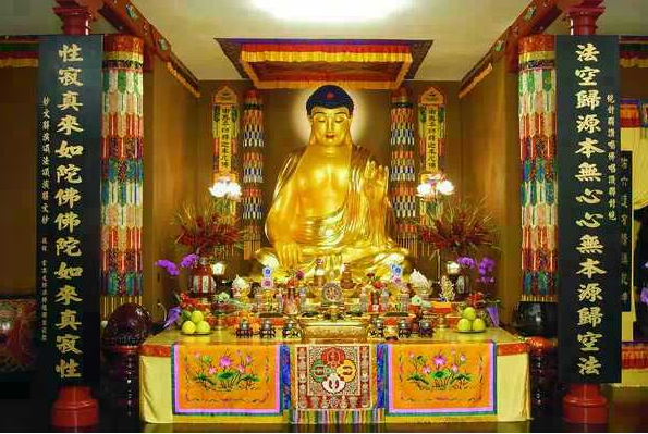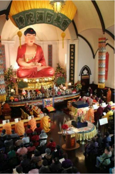 2008年在美国旧金山华藏寺大雄宝殿迎请《多杰羌佛第三世》宝书大典 ↓